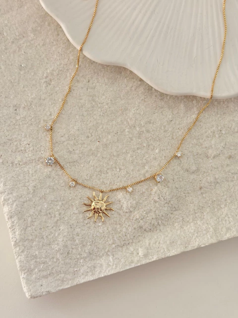 Chocker Sol e Ponto de Luz Banhada a 5 Milesimos de Ouro(Hipoalergênica e Livre de Níquel)